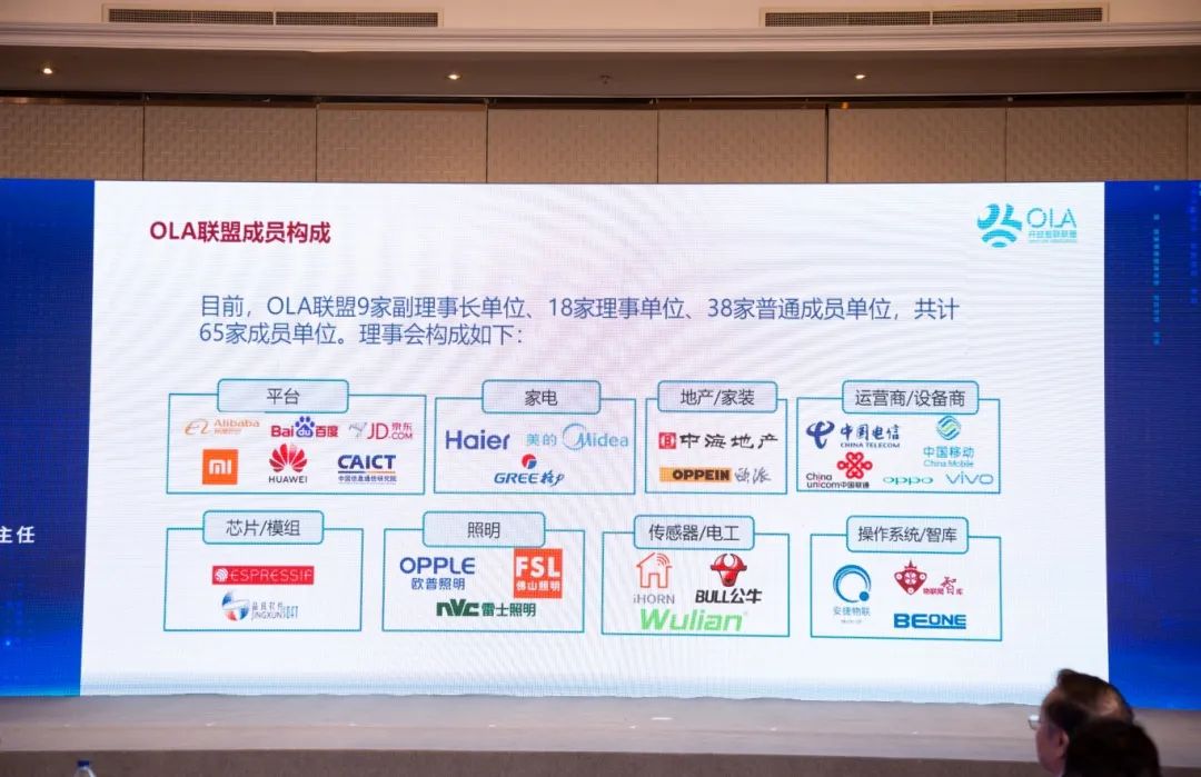 OLA联盟目前拥有阿里、百度、京东、小米、海尔、华为、中国电信、信通院、中国移动9家理事长单位,18家理事单位,及38家普通成员单位,共65家成员单位,汇聚了诸多互联网和IT领域的行业巨头,在物联网互联互通标准的制定方面,具有权威性。