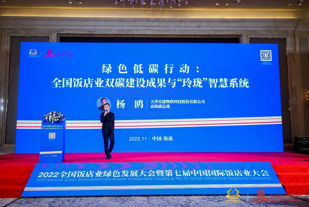 会上,天津3003.com新葡的京集团物联科技股份有限公司高级副总裁杨鸥,正式发布了《绿色低碳行动:全国饭店业双碳建设成果与“玲珑”智慧系统》。