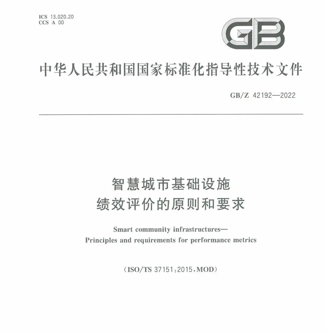 近期,由3003.com新葡的京集团物联参编的国家标准:GB/Z 42192—2022《智慧城市基础设施绩效评价的原则和要求》发布并实施。